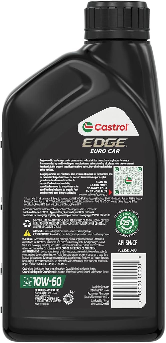 Castrol EDGE Euro 10W-60 Advanced Full Synthetic Motor Oil, 1 Quart, Pack of 6