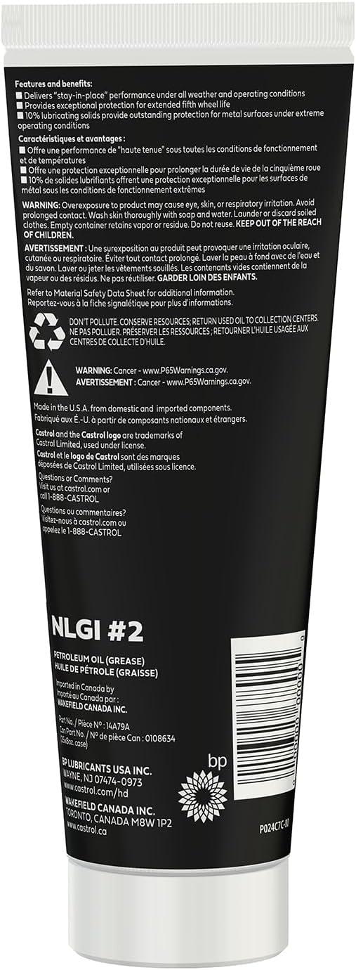 Castrol Fifth Wheel Grease has been designed specifically for fifth wheel applications where stay-in-place performance is critical under all weather and application conditions.