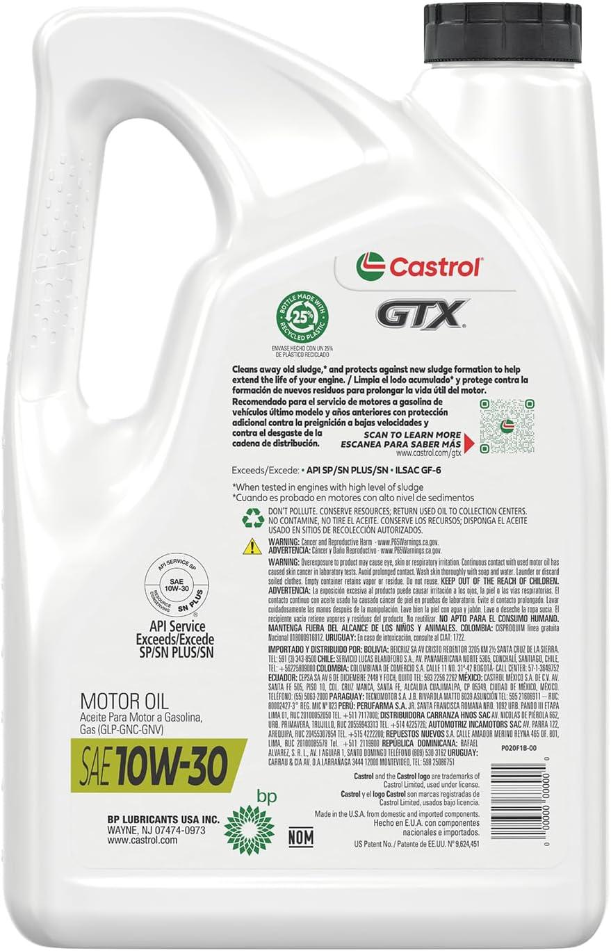 Castrol® GTX® is a premium conventional motor oil that has been helping to extend engine life for over 50 years. It is specially engineered to prevent harmful build-up of sludge while protecting against new oil splatter formation better than tough industry standards.