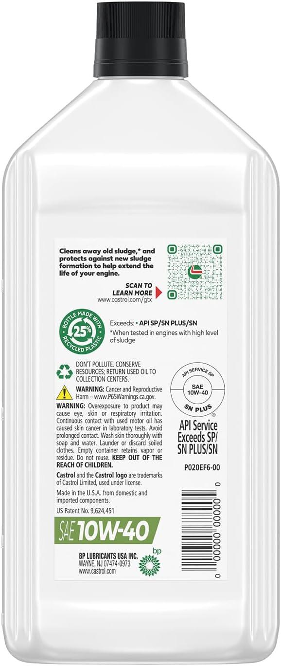 Castrol® GTX® is a premium conventional motor oil that has been helping to extend engine life for over 50 years. It is specially engineered to prevent harmful build-up of sludge while protecting against new oil splatter formation better than tough industry standards.