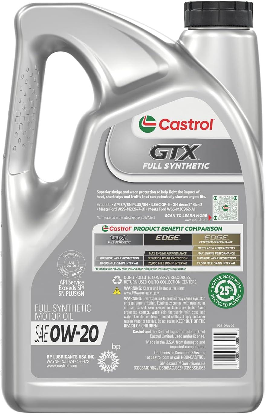 Castrol® GTX® Full Synthetic provides maximum protection to help fight the impact of severe conditions that can potentially shorten engine life. Castrol® GTX® Full Synthetic dramatically reduces engine wear. Plus it cleans away old sludge* and protects against new sludge formation better than required by the latest industry standard. *When tested in engines with high level of sludge
