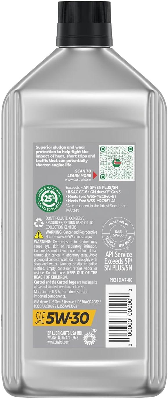 Castrol® GTX® Full Synthetic 5W-30 motor oil provides maximum protection to help fight the impact of severe conditions that can potentially shorten engine life. It's formulated to provide Superior Protection in 7 Critical Areas including engine wear and sludge control, cleaning away old sludge*** and protecting against new sludge formation better than required by the latest industry standard. ***When tested in engines with high level of sludge