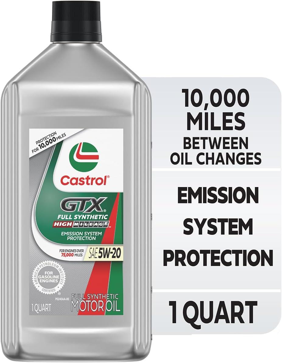 Castrol GTX Full Synthetic High Mileage is a full synthetic oil engineered specifically for vehicles with over 75,000 miles. It is formulated with Phosphorous Replacement Technology, a proprietary additive that reduces the level of phosphorus, which is harmful to catalytic converters and can shorten emission system life. It provides enhanced protection against wear, leaks, oil burn off and power robbing deposits.