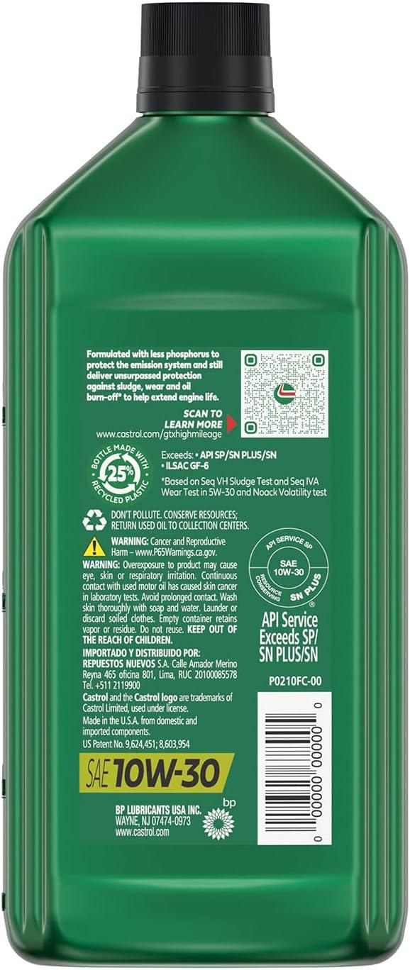Castrol® GTX® High Mileage is the #1 consumer high-mileage brand. It's a synthetic blend engine oil that helps extend the life of engines by protecting against sludge, wear and burn-off. Engineered with Phosphorous Replacement Technology, it also protect emission systems by replacing some of the phosphorous that can damage catalytic converters.